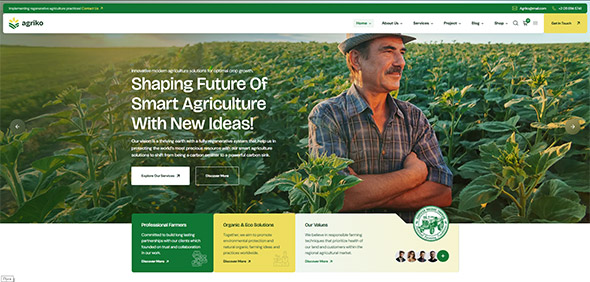 Agriko is a modern and clean WordPress theme created for agriculture, organic food, and eco-friendly businesses. It is suitable for farms, livestock and poultry operations, gardening and landscaping services, and companies that sell natural products. The theme is designed to look professional on all devices, helping businesses present their services and products online while attracting potential customers.
