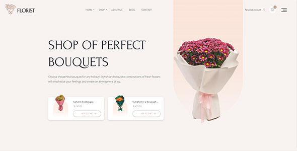 Florist is a WordPress theme designed for online flower shops and floral studios. It allows florists to create a modern, convenient website to showcase bouquets, arrangements, and other floral products in a visually appealing way. The theme is ideal for businesses that want to provide a professional and user-friendly online shopping experience.
