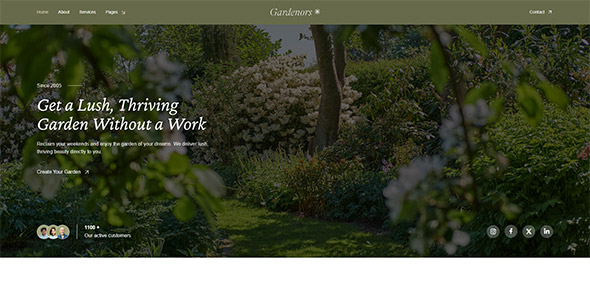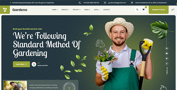 Gardeno is a modern and fully responsive WordPress theme created for gardening and landscaping businesses. It is suitable for companies that provide services such as lawn care, garden maintenance, landscaping projects, and outdoor design. The theme can also be used by gardening agencies, groundskeeping teams, florists, and businesses focused on ecology or agriculture. Its design helps create a professional website that presents services clearly and attracts potential customers.