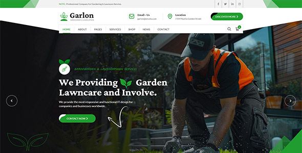 Garlon is a modern and multipurpose WordPress theme created for gardening and landscaping businesses. It is designed for landscapers, lawn care services, flower shops, garden centers, and landscape designers. The theme can also be used for other related businesses such as beekeeping or eco-friendly projects. Its clean layout and well-structured pages help companies present their services clearly and build a strong online presence.