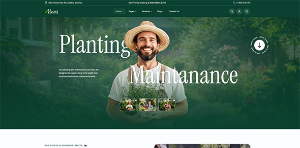 Horti is a WordPress theme designed for gardening, landscaping, and outdoor service businesses. It works well for companies that offer lawn care, garden design, plant sales, and landscaping services. The theme is also suitable for nurseries, flower shops, garden equipment stores, and other businesses related to plants and green spaces. Its clean and modern design helps present services and products in a professional way.