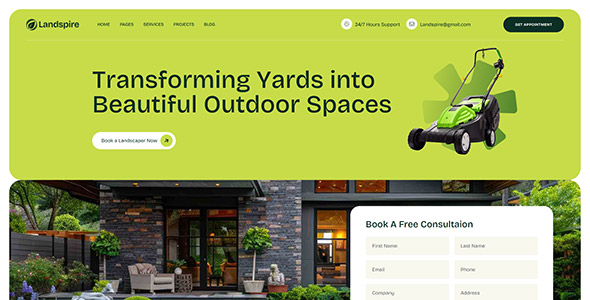 Landspire is a WordPress theme designed for gardening and landscaping websites. It includes ready-made web elements that help users quickly build a professional site for their business. The theme is easy to customize and comes with a powerful admin panel that allows users to manage settings, layouts, and content without needing technical knowledge. Its clean and modern design helps create an attractive online presence for companies in the gardening and landscaping industry.