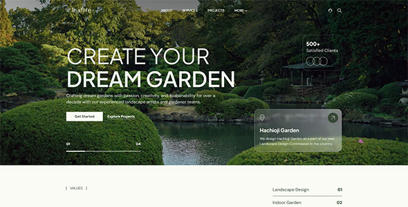 The theme features a clean and modern design with dedicated pages for services and projects, allowing businesses to present their offerings and portfolios in detail. LeafLife is cross-browser compatible and works seamlessly on all major browsers, making it a reliable solution for building an attractive and professional online presence for landscaping and gardening services.